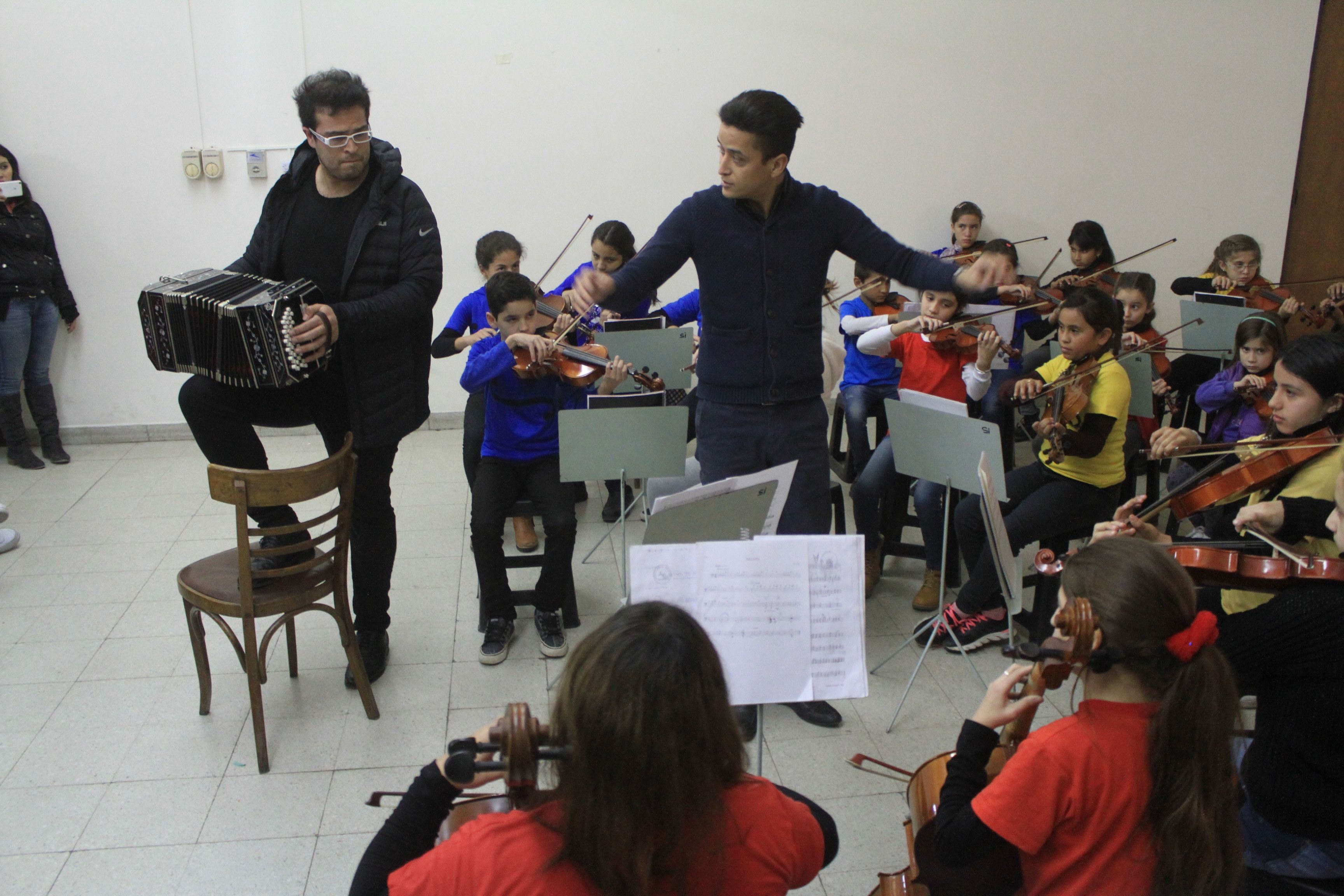 Luego de tocar en Buenos Aires, Córdoba, Mendoza y también en el Auditorio Juan Victoria, Juan Pablo Jofré y parte de su Hard Tango Chamber Band -el quinteto que formó en 2008 en Nueva York- se despidieron ayer de la Argentina (donde concretaron una exitosa primera gira) para regresar a Estados Unidos, y lo hicieron en la tierra natal del internacional bandoneonista. Pero esta vez, con un condimento especial: junto a la chelista Amy Kang y al violinista Eric Silberger (Pablo Cafici y Chris Johnson estuvieron ausentes por cuestiones de salud), se presentaron en la Sociedad Israelita, en un cálido e intimista miniconcierto que incluyó a la Orquesta Escuela -dirigida por Jorge Rodrigo-, precisamente el núcleo que funciona en esa institución: la canción de cuna Arco Iris. Los niños abrieron con Danza Rusa e Himno a la Alegría; y después tocaron los "Hard Tango" un Capricho de Paganini, una Suite de Bach, otra canción de cuna -Sweet Dreams, que Jofré compuso para su sobrina- y un Preludio para cello y bandoneón. A modo de despedida, los pequeños volvieron a tocar el Himno a la alegría, tal vez una oda al reencuentro de Juan Pablo con sus raíces.