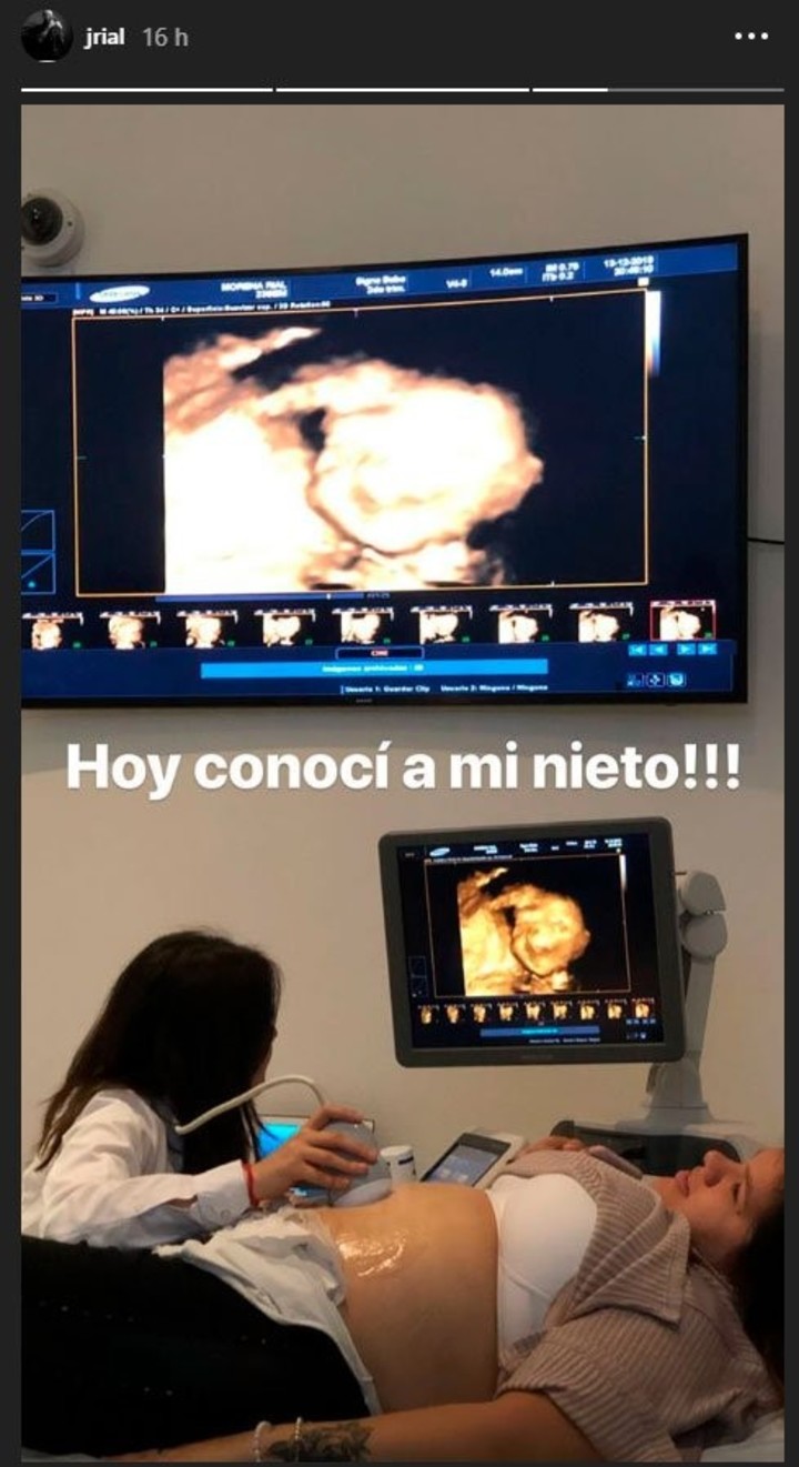 “Hoy conocí a mi nieto”, escribió Jorge en Instagram Stories junto a una imagen donde se ve a su hija acostada mientras monitorean su panza de seis meses de gestación. También se puede ver al bebé que espera junto al futbolista Facundo Ambrosioni.