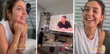 Con la emoción a flor de piel, las únicas palabras que le salieron a la periodista fueron: “Es insólito, increíble, no sé… qué increíble, bol…”, mientras buscaba el abrazo de su novio. Tras una risa de felicidad, una pregunta de ella se caía de madura: “¿Lo podemos ver otra vez?”. Y ya con los ojos llorosos, pidió verlo una tercera vez, mientras explicaba que “esta parte nos la vamos a saber de memoria”, justo antes de reproducirlo nuevamente, por cuarta vez.