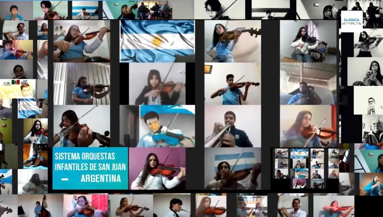 El seleccionado que formó la Fundación Orquesta Escuela, con chicos de 12 años de edad en adelante, está comunicado mediante Zoom, dos días a la semana, organizados por secciones instrumentales. Las sesiones son preparadas por Andrea Merenzon, presidenta y directora artística del festival. Ella fue quien los invitó el año pasado y la membresía sigue vigente y confirmada para todos al momento en que se pueda viajar a Misiones. A la espera que se den las condiciones sanitarias adecuadas y que se garantice la seguridad sanitaria -algo que determinarán las autoridades competentes provinciales y nacionales-, los organizadores estiman que entre noviembre o diciembre pueda hacerse solamente el tradicional acto de clausura. Mientras tanto, el cronograma de actividades vinculadas al festival continúa en pie pero con la modalidad online. En esta primera etapa, corresponde a los ensayos y producciones audiovisuales para ser difundidos por Radio Nacional Clásica y redes sociales, como es el recientemente editado "Marcha a mi bandera", en el que tuvo una fuerte participación el seleccionado local.