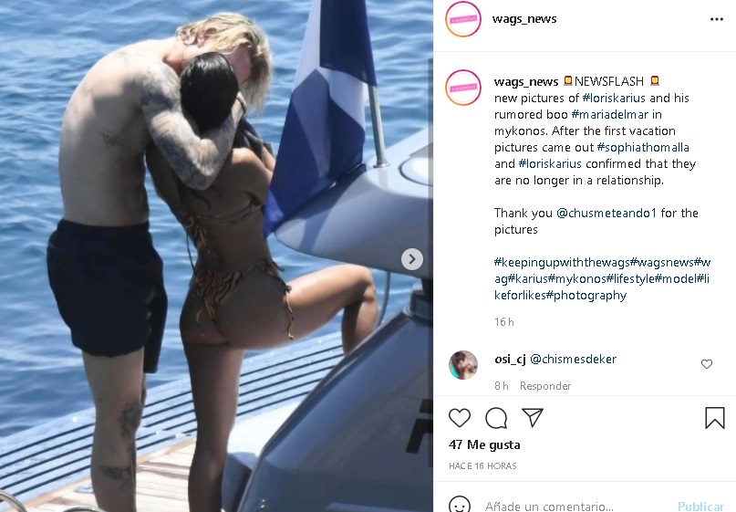 La modelo María del Mar Cuello Molar, exesposa de Matías Alé, quedó envuelta en un escándalo internacional luego de ser fotografiada junto al exarquero del Liverpool Loris Karius en la isla griega de Mykonos.