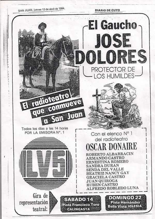 De acuerdo a la investigación realizada por la licenciada y profesora en Historia, Carolina del Valle Olivares, la puesta en marcha de las primeras emisoras LV1 (hoy Radio Colón) y LV5 Radio Los Andes (Hoy Radio Sarmiento) impulsó al radioteatro como fenómeno cultural en sus respectivas programaciones. A partir del legendario ciclo de La Pandilla del Tío Melchor conducido por Alberto Vallejos a mediados de la década del "30, emergieron pioneros como Carmelo López, Oscar Donaire y Enrique Villamar, en títulos como "Barranca Abajo" y "Mi hijo el doctor". En 1945, Elcira Olivera Garcés y Arnaldo Maciel, impulsaron el primer "concurso de voces" para conformar un elenco estable de radioteatro en LV1. De allí surgieron grandes figuras como Alberto Vallejos, Silvia Montes, Liliana Dávila, Carlos Vila, José Luis Cícero y María Teresa Acosta. "Ojos Verdes Fondo de Mar" fue uno de los grandes éxitos en las tardes semanales de esa camada junto a "El León de Francia" (1952) y "Fachenzo el Maldito". En los años "60, se propagaron ficciones noveladas con personajes históricos o de leyenda, dando lugar a obras como "La Difunta Correa", "La Martina Chapanay" y "El Gaucho José Dolores", entre otros que tuvieron continuidad hasta mediados de los años 80. En la actualidad, hubo intentos particulares de reflotar el género, como por ejemplo la adaptación de "La Deolinda, testimonio de un milagro, por Julio César Barton que se emitía por FM Encuentro 94.3 hace unos años y cuyo material está alojado en el canal de Juan Quiroga Heredia en YouTube y www.vocessanjuaninas.jimdofree.com.
