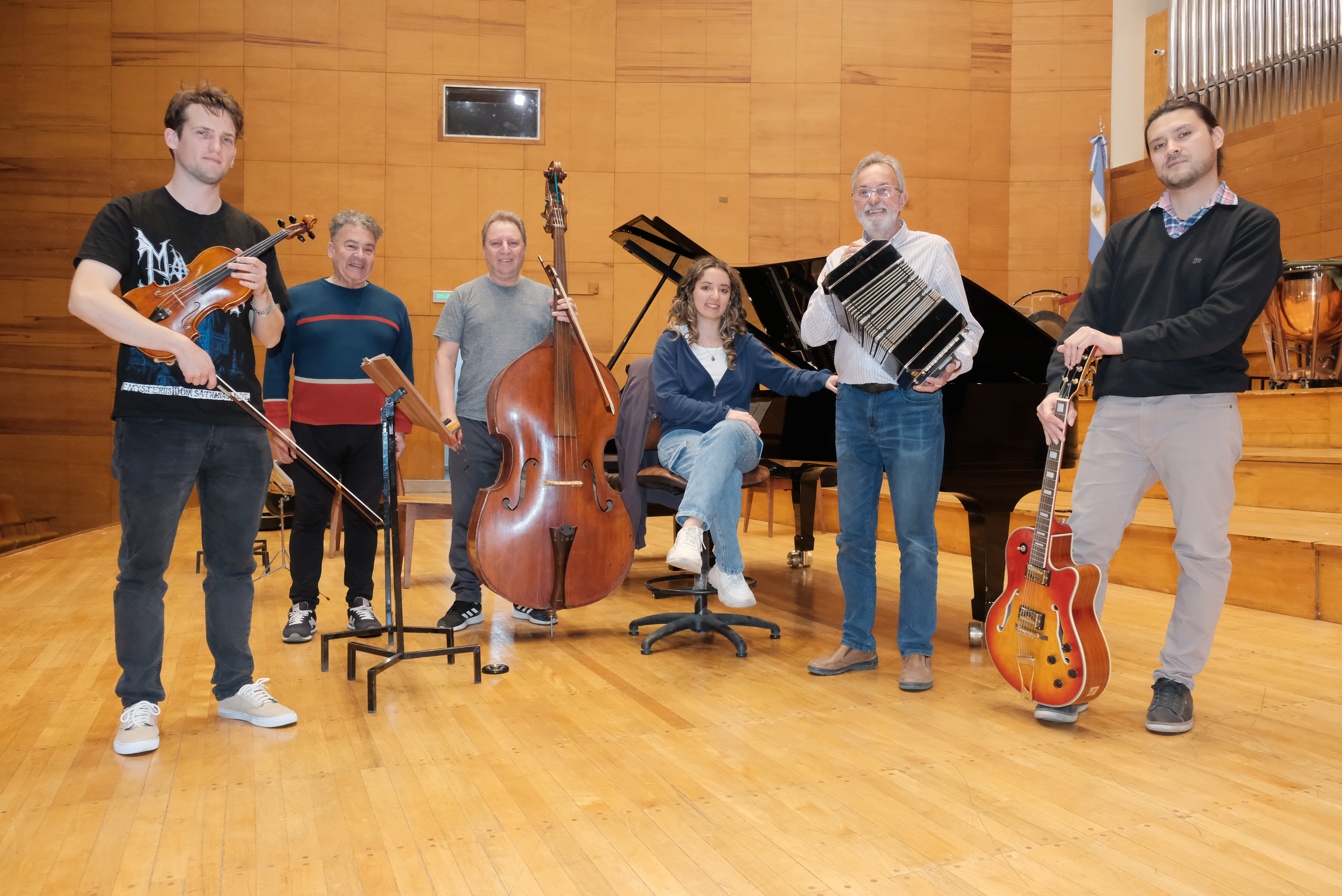– El año pasado hice en el Bicentenario "Homenaje al bandoneón", un par de piezas cantadas y el resto bandoneón solo, con un narrador y pareja de baile. Fue un trabajo que preparé durante la pandemia, muy lindo. Y cuando todo empezó a flexibilizarse se me ocurrió trabajar con otros instrumentos. Primero elegí el repertorio, estudié cómo quería presentarlo y entonces seleccioné a los músicos. Incorporé dúos como piano-bandoneón, violín-bandoneón y canto-bandoneón, trío de guitarra clásica, contrabajo y bandoneón; y quinteto con piano, bandoneón, guitarra eléctrica, violín y contrabajo. Son dos tangos en cada formato y el final con los seis integrantes del proyecto. Eso lleva obviamente a una variedad de sonoridades.