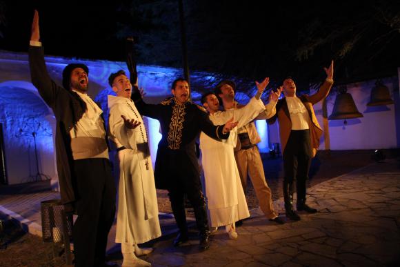‘El convento….’ cuenta con el asesoramiento histórico de la Licenciada Liliana Barela, directora general de Cultura del Senado de la Nación y del historiador local Ángel Licciardi. Y el elenco (seleccionado por un casting previo) está integrado por Germán Curto (San Martín), Julián Pucheta (Fray Eduardo), Juan Manuel Bevacqua (José Clemente), Sebastián Ziliotto (Ignacio de la Roza), Sergio Paglini (Francisco Laprida), Matías Prietoeccia (Fray Justo S. M. de Oro) y la participación especial del chico sanjuanino Franco Martínez Rago como Domingo Faustino Sarmiento (que forma parte del cuerpo protagónico con solo 4 años de edad); y de la Banda de Música del DIM 22. Los arreglos y orquestaciones son de Nacho Medina, Juan Bidegain y Sebastián Abadie. A las 19 será la cita para el público en general de manera libre y gratuita. Parte del material grabado será televisado el 8 de julio próximo en un programa especial que emitirá la Televisión Pública durante la Vigilia que realizará el Presidente de la Nación, Mauricio Macri, en Humahuaca. Este espectáculo pertenece a un nuevo ciclo federal de contenidos especiales titulado ‘El 9 de julio también es aquí’ en adhesión a los 200 años de la Independencia Argentina.