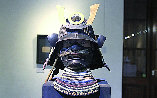 Kabuto y Menpe de armadura Samurai del siglo XVIII. Encontrada en uno de los depósitos, es "una de las piezas inéditas del museo’, como explicó el director Carlos Campodónico.