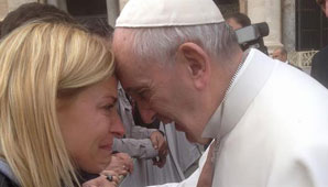 Cuando Tobal estuvo frente al Papa, le expresó cuál era su deseo: "Quiero decirle algo. Sólo me falta una cosa para ser feliz: quiero ser mamá". Después de esas palabras es cuando los dos se ponen frente a frente por unos segundos y ella se pone a llorar… Luego, el Sumo Pontífice la bendice.