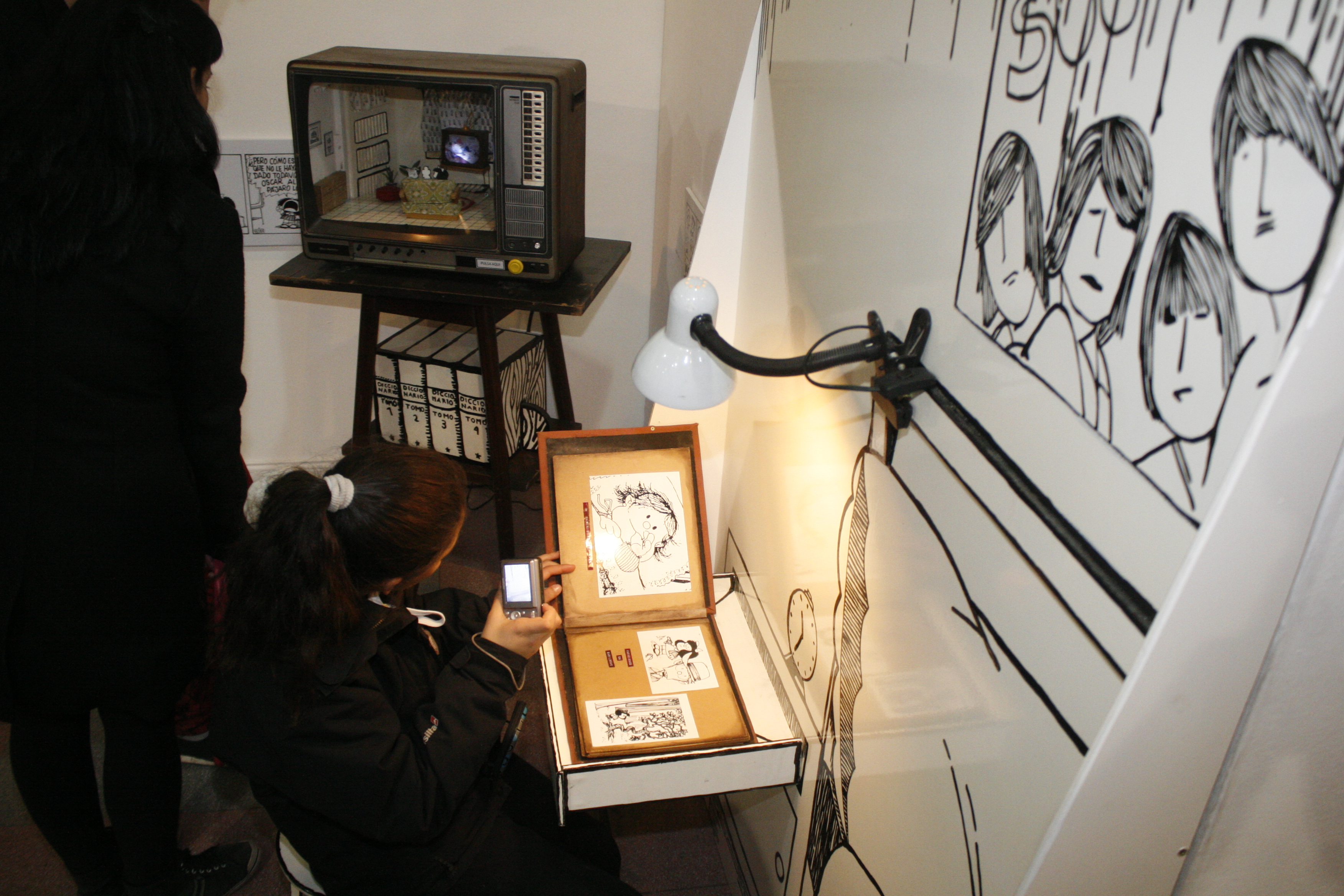 Otro de los motivos que trajo a Joaquín Salvador Lavado Tejón a la provincia en aquel corto pero intenso viaje, fue la visita a la muestra itinerante del museo cordobés Barrilete, dedicada a Mafalda -su obra maestra (vera parte)- que se exhibió en el Centro Cultural Conte Grand hasta agosto de ese año. Una postal para el recuerdo no sólo para los adultos que siguieron cada capítulo de los personajes a los que dio luz con su lápiz, sino también para sus hijos y nietos que se acercaron y conocieron su emblemática producción. Es que a través de la encantadora exposición, la muestra trajo al mundo de carne y hueso los elementos del mágico universo que ingenió este filósofo del dibujo para la entrañable niña de moño rojo, que nació cuando se presentó a Agens Publicidad, que buscaba a un dibujante para que creara una historieta "mezcla de Blondie y Peanuts" para publicitar el lanzamiento de una línea de productos electrodomésticos llamados Mansfield. Por esa razón es que el nombre de algunos de los personajes debían comenzar con la letra M, y de ahí Mafalda. Finalmente, Agens no hizo su campaña, pero Quino se quedó con unas pocas tiras que le serían útiles unos meses después, cuando dio vida al personaje que lo haría famoso.