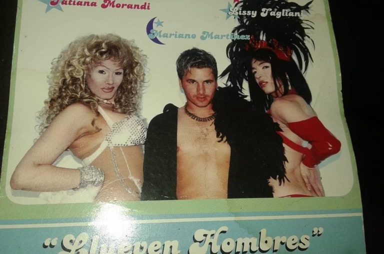 Se trata del flyer promocional del show que encabezaba junto a Tatiana Morandi y Mariano Martínez. Su espectáculo “Llueven hombres” se presentaba cada fin de semana realizaban en la disco Kilómetro Zero.