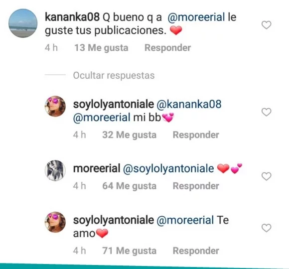 Al ver que Mariana la arrobó, More volvió a responderle con otro corazón… y Loly cerró con una linda dedicatoria: “Te amo”.