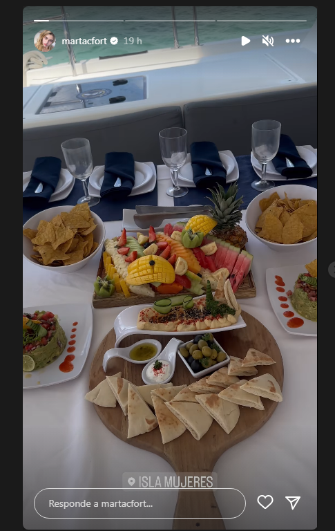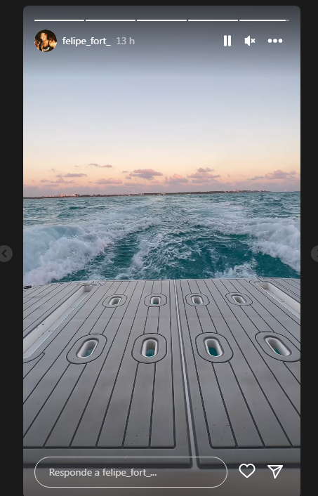 Una vez arriba, fue Felipe el que mostró mucho más. Compartió varios videos en los que se vio llegar a los dos con sus amigos y, arriba de la embarcación, los esperaba una excéntrica picada para disfrutar del mediodía.