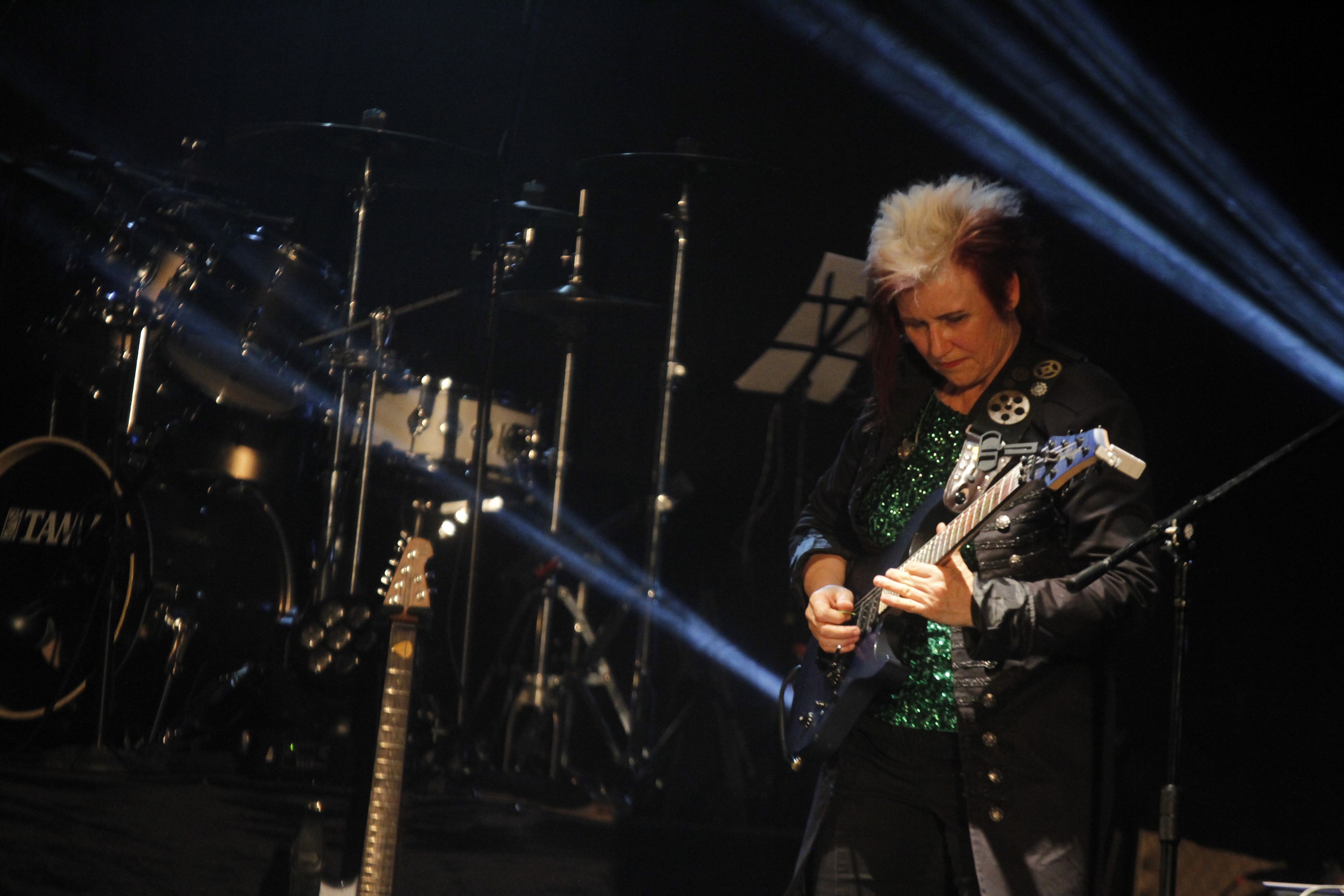 No acusa los 60 que tiene. Su cabello bicolor, entre fucsia y rubio platinado, además de su altura, no permiten que no pase inadvertida. Mucho menos cuando subió al escenario y su guitarra eléctrica comenzó a sonar.