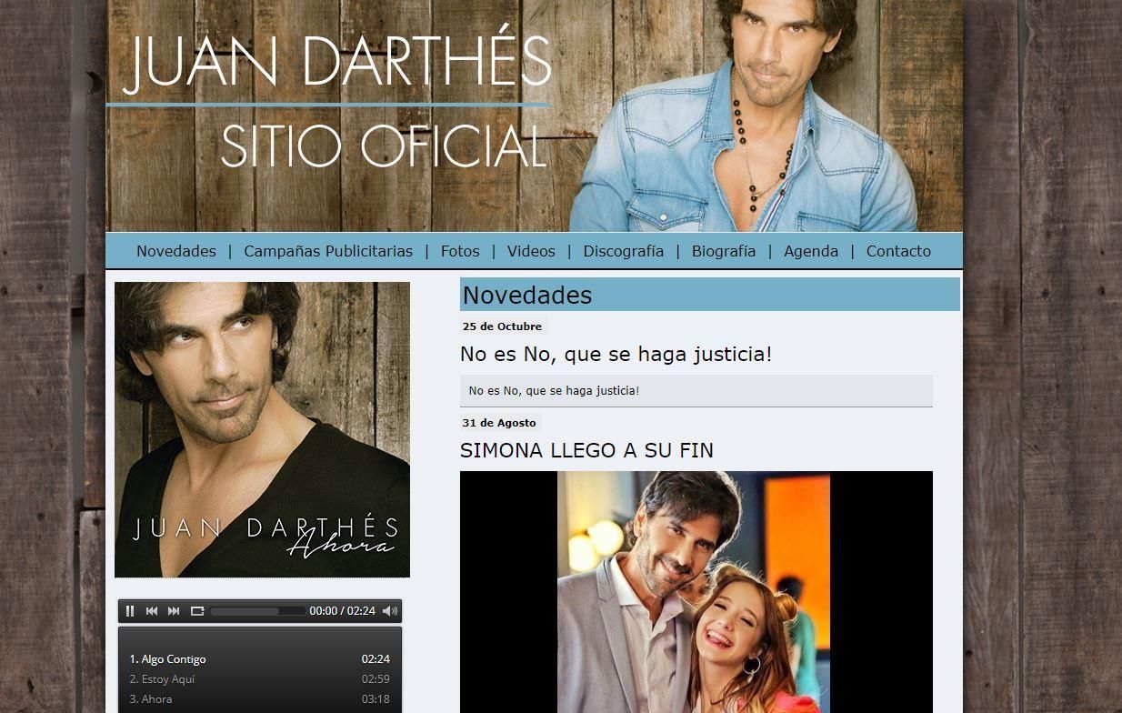 El sitio www.juandarthes.com.ar contiene novedades, fotos, campañas publicitarias y videos, entre otras cosas. Pero el último posteo, del 25 de octubre, fue modificado para dejar un mensaje contra la violencia de género y los abusos.