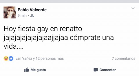 Con ironía, publicó: "Hoy (por ayer) fiesta gay en Renatto jajajajaja", en alusión a su boliche y acompañó el mensaje con un contundente: "Comprate una vida", claramente dedicado a la modelo bonaerense.