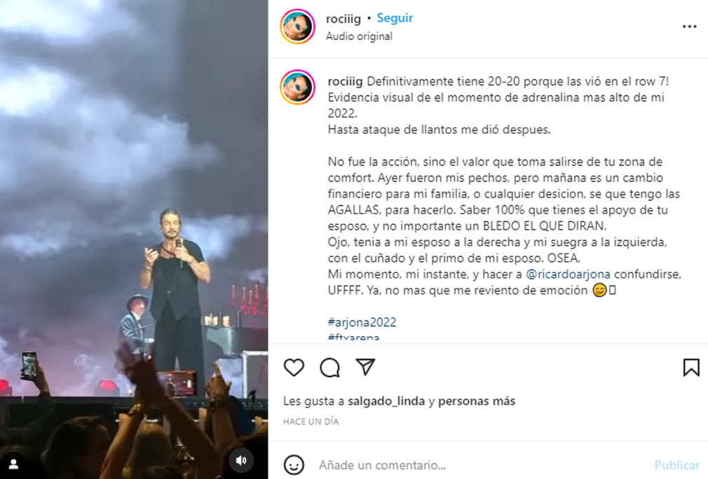 Ricardo Arjona brindó un show en Miami pero se mostró desconcertado después de que una espectadora se sacara la remera en pleno concierto. Ella misma publicó el momento en su perfil de Instagram: “Mi momento, mi instante, y hacerlo confundirse. Ufff. Ya, no más que me reviento de emoción”.