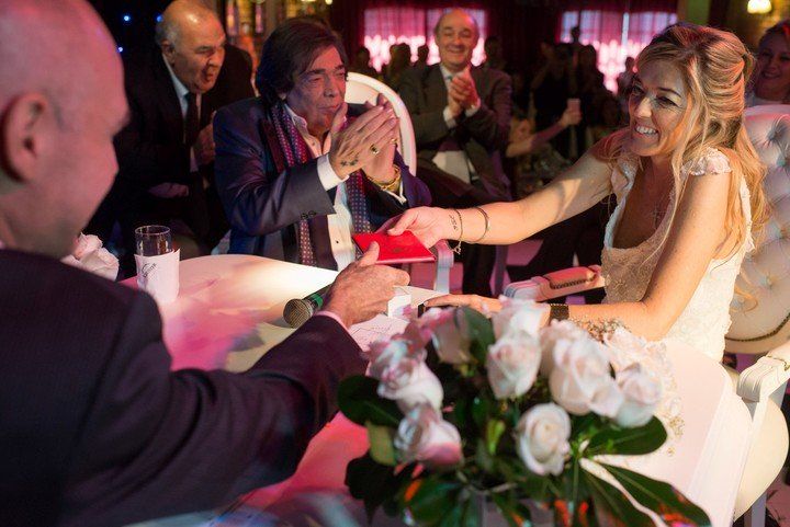 Se unieron en una ceremonia que dirigió el Jefe de Gobierno Porteño, Horacio Rodríguez Larreta. Después hubo una bendición de anillos animada por Guillermo Cóppola y Alfio Coco Basile. ¿El lugar? El teatro bar “Café La Humedad”, propiedad del cantante.