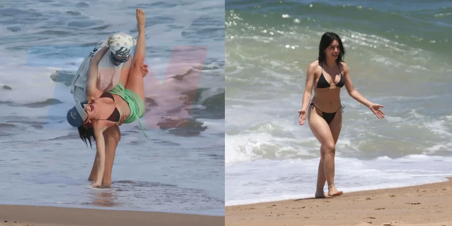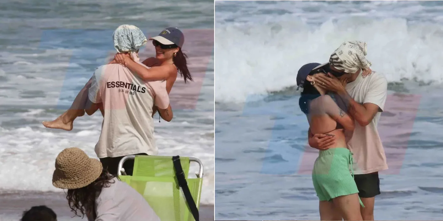 Ni bien notó la presencia de la prensa, y con la complicidad de uno de sus amigos, Lali lo llevó hasta la orilla, adonde se estamparon un tremendo beso. Un chape cinematográfico: como en una película rompántica, él la tomó en brazos y la llevó a upa.