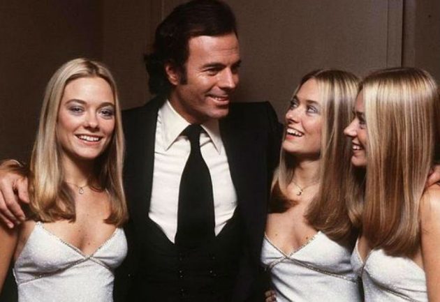 No, no es material de archivo. Las Trillizas de Oro volvieron al ruedo y para promocionar su regreso a la televisión (en el canal KZO de la tv digital), dieron entrevistas. Hablando de sus comienzos, María Eugenia, María Laura y María Emilia Fernández Rousse recordaron su época como coristas de Julio Iglesias en 1978 (foto), cuando ganaron popularidad en Europa. Las rubias, que hoy tienen 58 años, terminaron revelando cómo se comportaba el ídolo español con sus fanáticas. “No tenía ego. Vos veías lo que era la gente con él y él con la gente y era maravilloso’, acotó María Eugenia. “Le daba besos en la boca a todas, estaría con cadena perpetua’, aseguró, ubicando aquellas actitudes al contexto actual. “Las seguidoras muertas con él, hacían cola’, dijeron María Emilia y María Laura.
