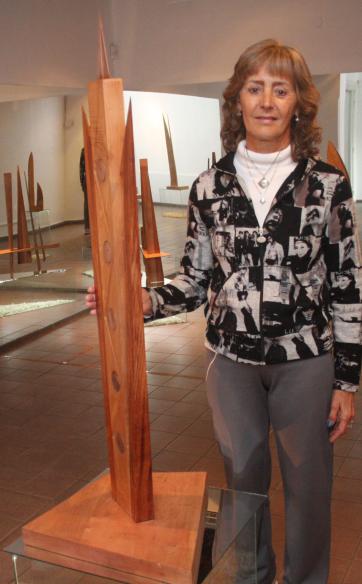 "Esta colección nace del estudio sobre las armas, desde la época primitiva hasta la actualidad, como lanzas, cuchillos, arpones, dagas, facones, hachas, puñales, dardos, chuzos, trasladadas a un territorio estético", señaló su autora sobre esta serie modelada en distintas clases de madera, como cedro paraguayo y argentino, laurel, zaita, incienso; a los que rescató su color original y recuperó en trozos, "sin destruir árboles", como destacó con una vista ecológica.
