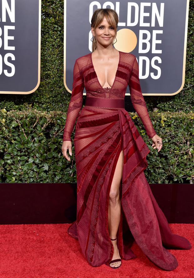 Halle Berry. La actriz deslumbró con un vestido burdeos de Zuhair Murad decorado con joyería de Roberto Coin.
