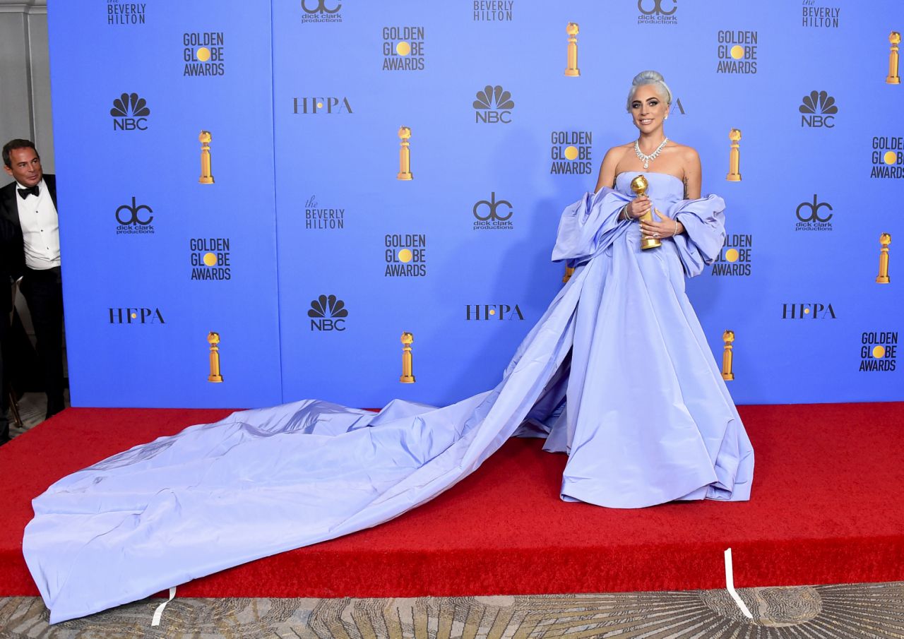 Lady Gaga. Con su pelo de tinte azul haciendo juego con un maxi vestido celeste con aguas labanda de Valentino -en honor a Judy Garland, que estelarizó A star in born, en 1954-, fue una de las protagonistas.