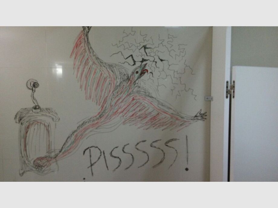 Anoche se realizó la Noche del Dibujo en el Museo de Bellas Artes Franklin Rawson. Tras el evento salieron a la luz imágenes de los sanitarios del lugar con sus paredes pintadas con diversos motivos de distintos colores e incluso la palabra “Pisssss”, en uno de ellos. Al respecto, la directora del Museo, Virginia Agote, aseguró que todo se trató de una intervención.