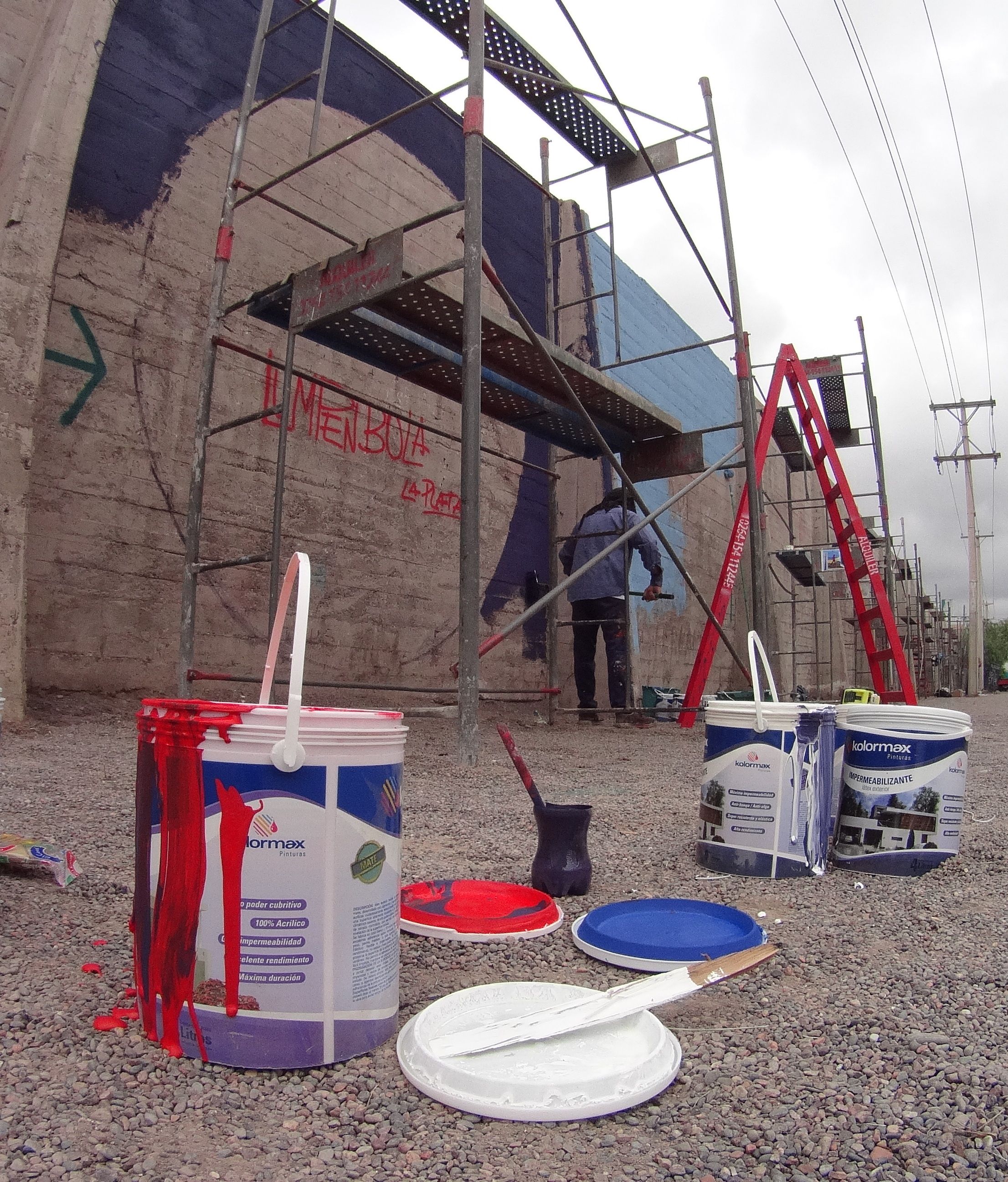 Látex, acrílicos y aerosoles. Todas las herramientas a mano para trabajar en la pared. La misión es transformar el espacio urbano, mediante la combinación de estéticas y técnicas.