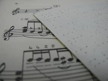 Distinto de la música en tinta, la música Braille es lineal, horizontal. Las señales que representan cada información musical se escriben en la partitura sucesivamente, una señal después de otra. Las partituras se imprimen en máquinas especiales, usando un gramaje determinado. Además de las transcripciones que haga Fátima usando una pizarra Braille, el resto de las partituras serán enviadas desde Buenos Aires.