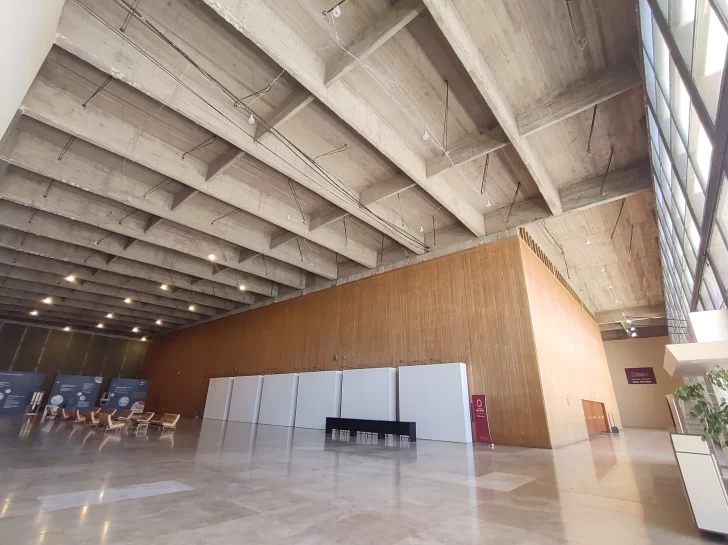 A más de dos años y medio del último terremoto que sufrió San Juan, el Auditorio Juan Victoria aún no puede recuperar su aspecto original. Es que los techos de los foyers Sur y Norte y el espacio que conecta ambos aún permanecen con las vigas de cemento a la vista, sin el cielorraso ni luminarias, sólo con unos focos colgando. Aunque podría parecer un estilo de decoración industrial, es en realidad una obra sin terminar.