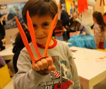 y se ponen a la par de los pequeños en la tarea de cortar y pegar. Maléfica, Frozen, el dragón Chimango (de Como entrenar a tu dragón), Tinker Bell (Campanita de Disney) y las Tortugas Ninja, están en lista de los preferidos, aunque también, crear las garras de Wolverine de los X-MEN, hace furor en muchos varones. La jornada comienza con las instrucciones dictadas por los profesores Daniel Muragua y Alejandro Flores. Eligen a los personajes, (cada día es de una película diferente) y explican paso por paso como armar maquetas, figuras en miniatura, accesorios o máscaras que los propios niños deben armar. Los chicos no tienen necesidad de llevar materiales, ya que los profes les proveen todo lo necesario: cartulina, pistola de encolar o Voligoma, papel y tijeras. Lo demás corre por cuenta de ellos, crear y jugar. Lo bueno es que cada uno se lleva su propio trabajo a su casa.