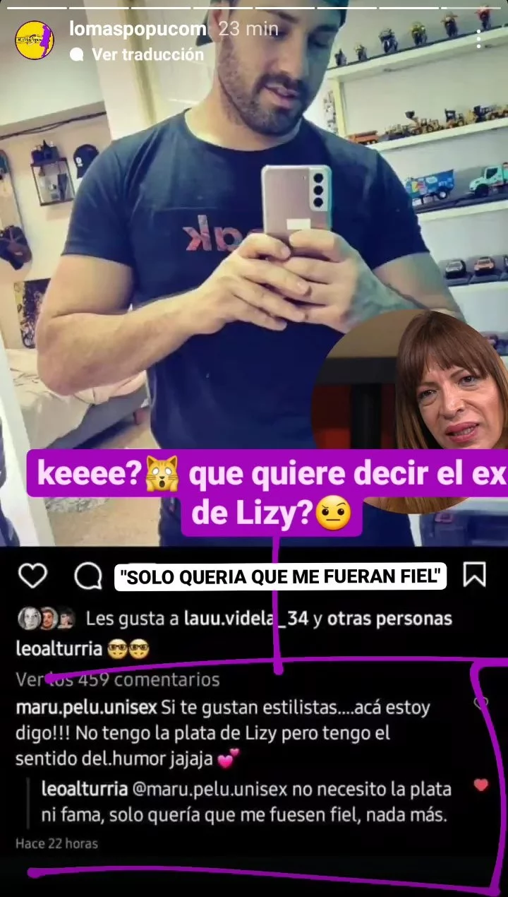 Todo se originó a partir de un comentario que le hizo una internauta de nombre Maru al ex de Lizy. "Si te gustan estilistas, acá estoy….No tengo la plata de Lizy, pero tengo el sentido del humor", publicó. Acto seguido, Alturria le respondió dejando entrever que la relación con la mediática finalizó a causa de un tercero en discordia. "No necesito la plata ni la fama, solo quería que me fuesen fiel. Nada más", sentenció.
