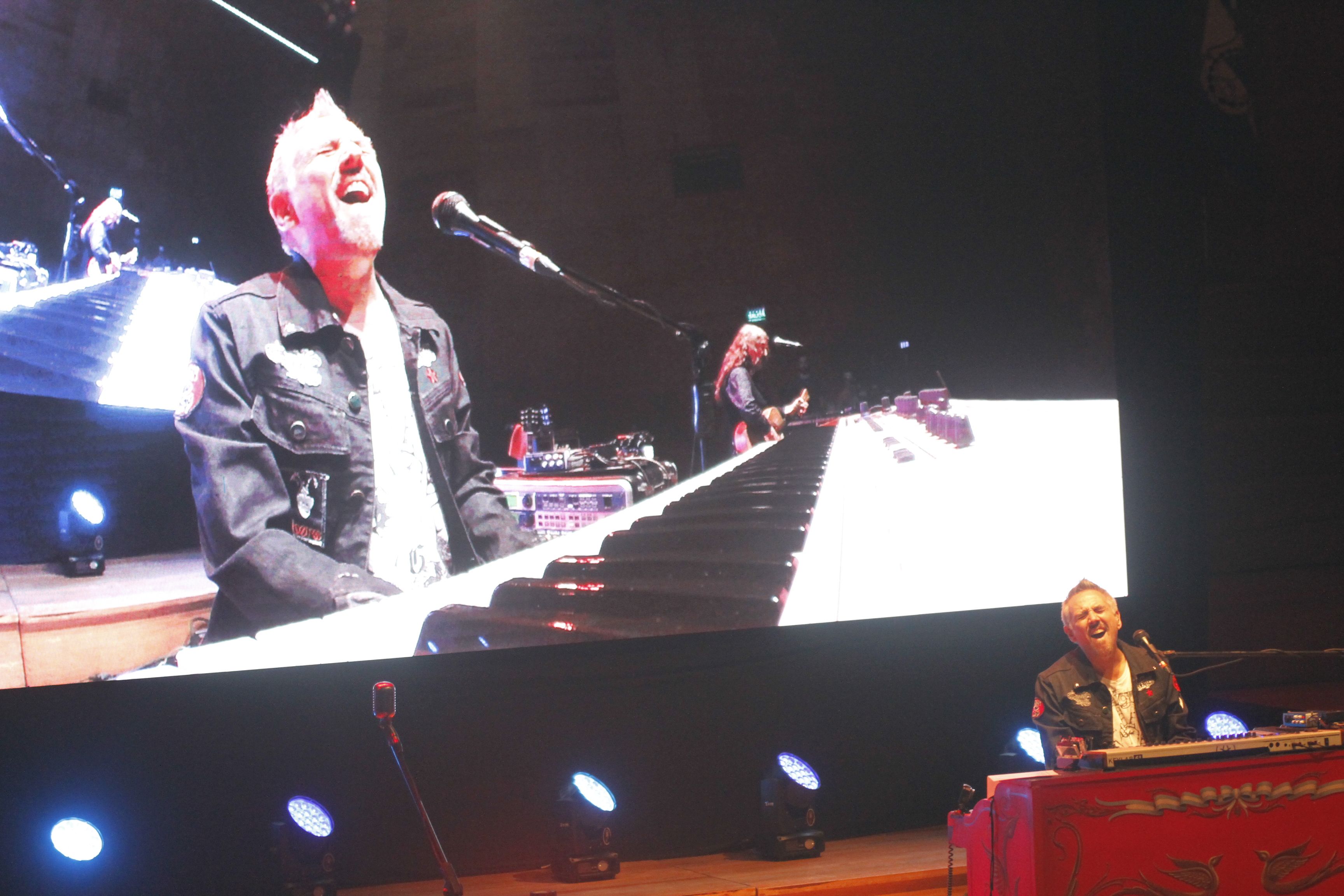 El músico finalmente actuó aquí, tras la postergación en octubre de la gira en Cuyo por una fractura en una mano. Sin embargo ayer -aunque hizo mención a que tiene que empezar la fisioterapia y que toma medicación- sus dedos volaron sobre el teclado e incluso se dio el lujo de tocar el órgano de tubos de la sala antes del show, y le fascinó.