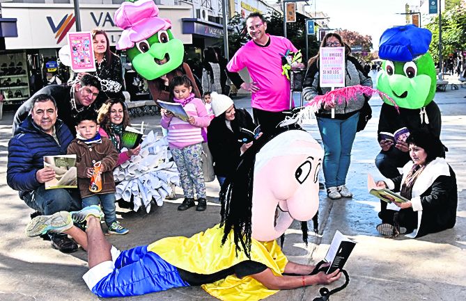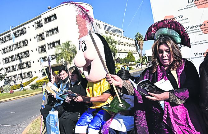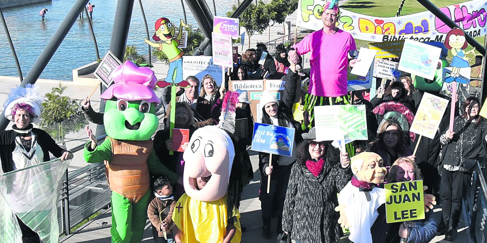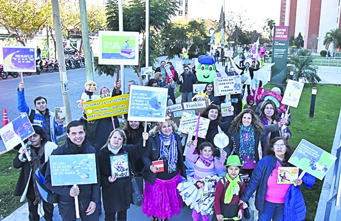 En un cartel sobre el anaquel decía una leyenda, "Hoy es nuestro día. Si te gustamos mucho… entrá y llevanos con vos", como una suerte de lema de campaña, niños y niñas, padres, madres, escritores, escritoras y bibliotecarias transitaron por las calles manifestándose por la lectura, por las palabras, por los libros. En este clima de participación colectiva, fue celebrada la Fiesta Provincial del Libro. Con una serie de intervenciones urbanas, los amigos y amigas de las Bibliotecas Populares, con los personajes de los cuentos infantiles caracterizados, interrumpieron el tránsito de la Avenida San Martín por unos minutos para leer algunos títulos tales como La Odisea de Homero, los 100 poemas de Buenaventura Luna, El niño que fue maestro de Rodolfo Pini y Entre ángeles y abismo de Liliana Pividori; clásicos de Borges, Cortázar, Allan Poe, Salvador Gaviotta, José Ingenieros y muchos más, estaban en las manos de todos. El segundo punto de encuentro fue la Plaza del Bicentenario, atravesando el puente colgante, levantaron pancartas y carteles con consignas y frases escritas, un gigante con zancos y megáfono caminaba a paso lento junto a Patoruzú y la tortuga Manuelita, acompañados también por Caperucita Roja y el Hada de los Libros, quienes animaban a los niños a sacarse selfies. Frente a la gran fuente de la plaza, se tomaron otras lecturas, por ejemplo, de los cuentos y fábulas infantiles. Algunos curiosos peatones que transitaban por el lugar, se animaron a ver qué estaba pasando y se encontraron con la grata sorpresa de recibir un texto para compartir y leer. Al principio fue en privado, personal, pero después se exteriorizó utilizando el megáfono para, en voz alta, expresar las ideas. La última instancia fue el cruce de las peatonales del microcentro. Mientras circulaban las personas por el lugar, aprovecharon la suelta de libros que, ubicados los tomos en los bancos de cemento, de manera espontánea, el público venía a llevarse o intercambiar los títulos. Por la tarde la fiesta tomó cuerpo en el Museo Agustín Gnecco que, de manera más formal, hubo presentaciones de textos de autor, charlas e intervenciones artísticas, con títeres, danza y teatro. No fue un día más que pasara desapercibido para los que sostienen y defienden el uso del libro como instrumento de encuentro y conocimiento con el otro.