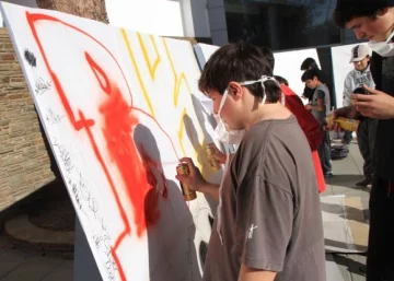 Una convocatoria abierta para jóvenes llamada "Graffiteros al museo" generó un impulso colectivo poco habitual en las vacaciones de invierno. Gracias al profesor Iván Manrique, motor de la propuesta, logró reunir alrededor de 20 adolescentes quienes estuvieron acompañados por algunos padres durante tres intensas y fructíferas jornadas. Con el único resquicio de calor en las siestas, bajo la luz del sol, los graffiteros se arremangaron y con barbijo puesto, soltaron su imaginación a volar. El graffiti y el muralismo urbano siempre crean momentos de participación. Mate, tortitas o gaseosa para compartir y la buena onda, conectaban a todos en la creación. El espacio ideal para trabajar en el taller fue en la entrada del Museo de Bellas Artes Franklin Rawson.