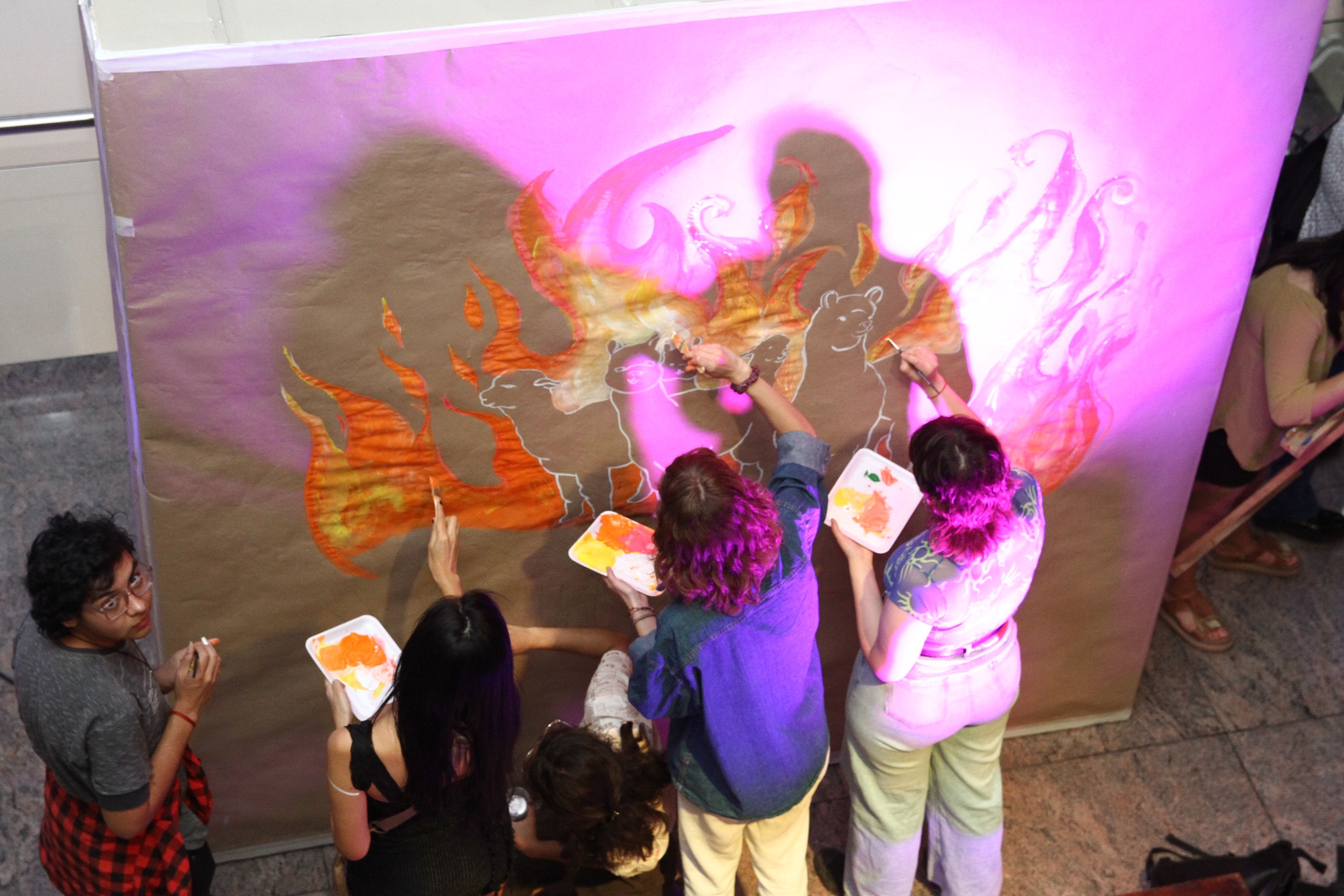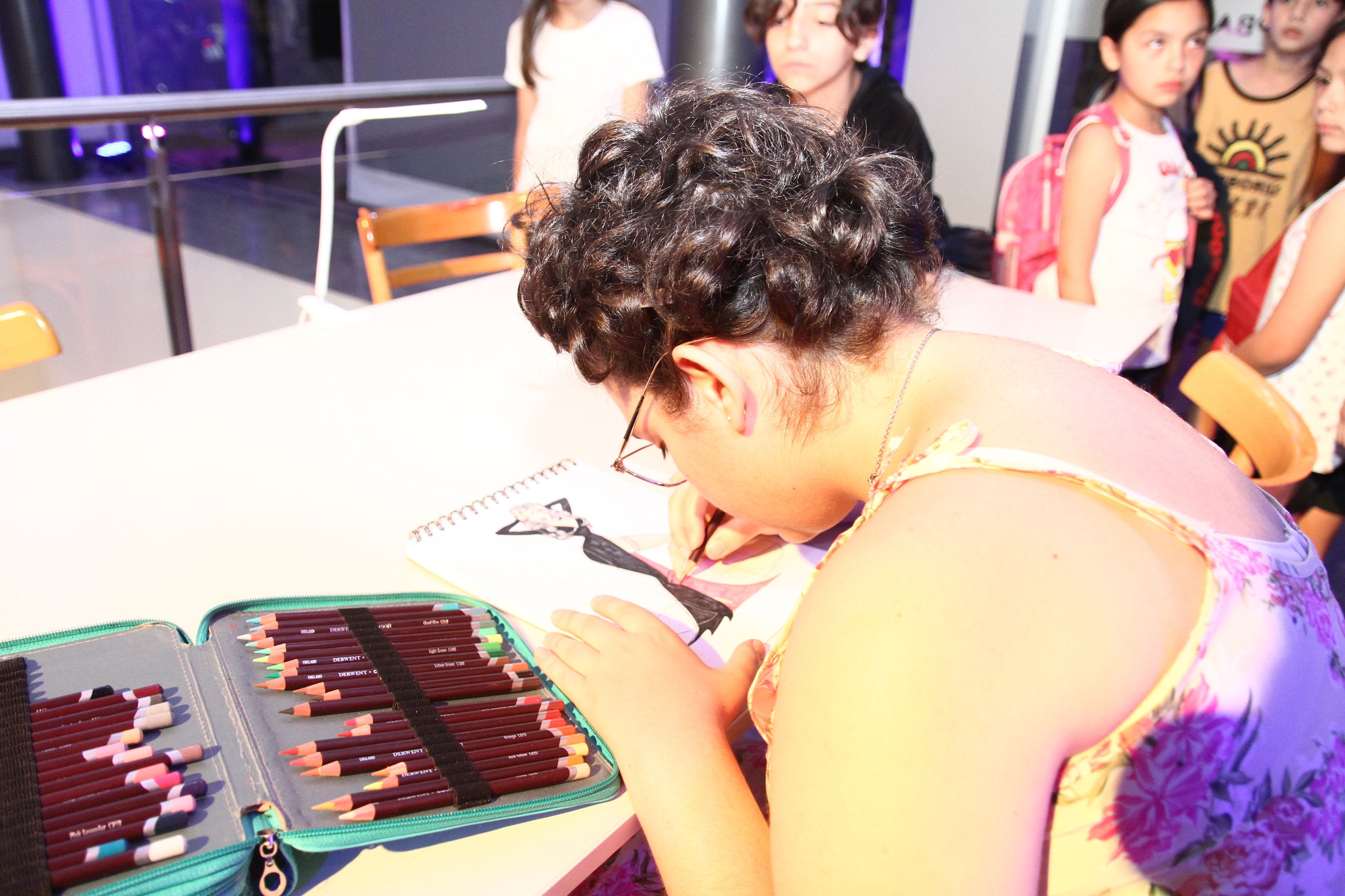 La consigna fue la de siempre, desde que fue creado en 2016, el encuentro de dibujantes aficionados y profesionales fue celebrado con el arte en vivo. Ayer, los espacios del Museo de Bellas Artes Franklin Rawson latieron al ritmo marcado por la expresión espontánea de pinceles, crayones, lápices y otros elementos en manos del público. La Séptima Edición de la Noche del Dibujo tuvo nuevamente el colorido de una experiencia compartida por todos y todas, de todas las edades y de todas las pertenencias o identidades. En la explanada, un grupo de performers, acompañados por luces LEDS y reflectores daban la bienvenida a una fiesta abierta donde podía la imaginación liberarse entre líneas, colores, sonidos y melodías. Mientras el DJ Shaku ambientaba con música electrónica la entrada del complejo, rápidamente las mesas dispuestas se colmaron de practicantes para dibujar. Unos modelos rotaban en distintos turnos y posiciones para que sean tomados y registrados en el papel. Algunos utilizaban caballetes, otros preferían armar murales con otros materiales. Hubo todo tipo de intervenciones, desde el dibujo simple, hasta el croquis y la representación abstracta o figurativa. Cada quien elegía lo que más prefería.