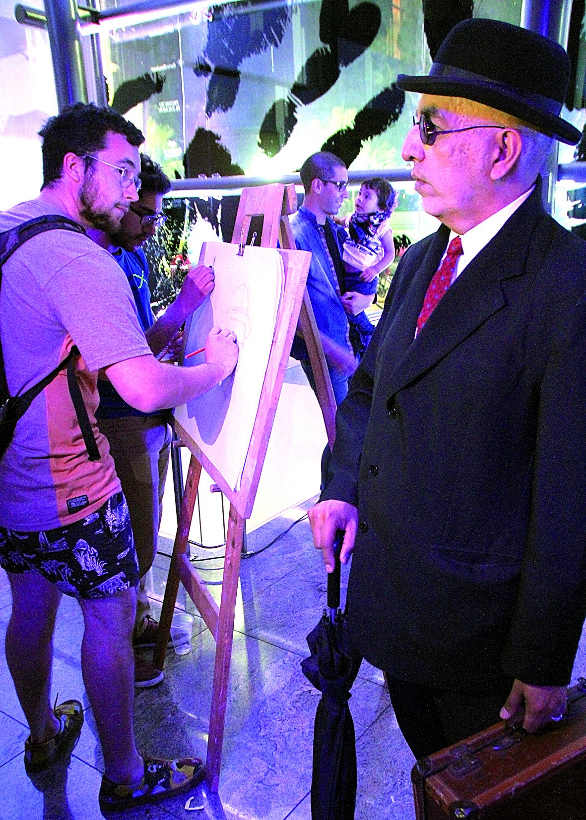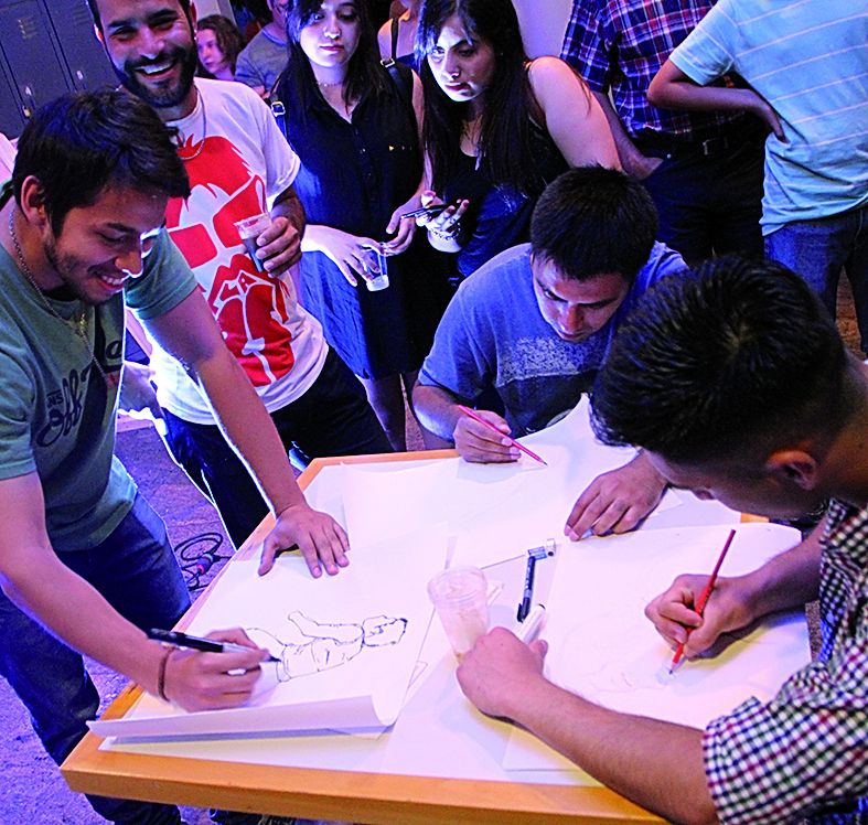 Líneas y formas, colores y texturas. Todo un universo creado desde la punta de un lápiz, marcador o carbonilla. En el papel, criaturas figurativas o abstractas, según el caso, cobraban vida propia. La imaginación y la creatividad estaban desatadas, sin cadenas, sin límites. Así se vivió la denominada ‘Noche del Dibujo’, una experiencia de intervención y performance que se llevó acabo a noche en las salas y galerías del Museo Provincial de Bellas Artes Franklin Rawson. Como resultó exitoso el año pasado, se repitió una vez más esta propuesta que convocó a dibujantes profesionales y aficionados a intercambiar sus talentos y habilidades. Pero el público no tuvo un rol pasivo o de mero espectador, al contrario, se sumó a dibujar lo que sea. Desde objetos, cuerpos humanos o cualquier imagen lograda del interior de la persona. Incluso, los más chicos aprovecharon cada rincón para dibujar lo que ellos quisieran. Una asistente fue llevando en un carrito cargado con resmas, gomas, sacapuntas, lápices negros y de colores de gran variedad de trazos que fueron distribuidos para todos los asistentes. También hubo personas que llevaron sus propias cartucheras particulares. Y por si fuera poco, además de dibujar, se podía degustar un vaso de cerveza artesanal bien helada para pasar la jornada nocturna, que era bastante calurosa. Diversos estilos, técnicas y estéticas se conjugaron en este evento, que contó con la participación de varios modelos y performers, pero también de conocidos dibujantes del ambiente como Alejandra Carabante, Carolina Meló, Alberto Sánchez Maratta, el Grupo Nave de Piedra, Croquiseros Urbanos, Inés Lalanne, Laura Valenzuela, entre otros. Mientras dibujaban, la ambientación sonora y musical, fueron de la mano con Melodía Leiva y Fernando Higinio García, más la sesión de pistas de DJ Renzo en el hall del museo.