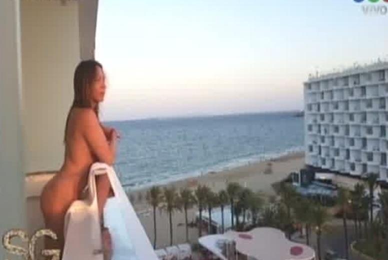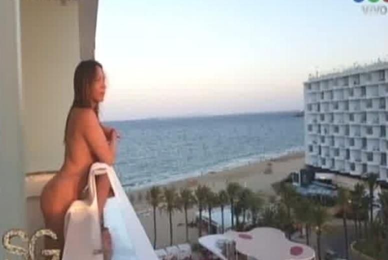 Entre carcajadas, Tagliani confirmó que había posado sin ropa y de inmediato en el programa se pudo ver la imagen de ella desnuda en un balcón del hotel donde se alojaron.