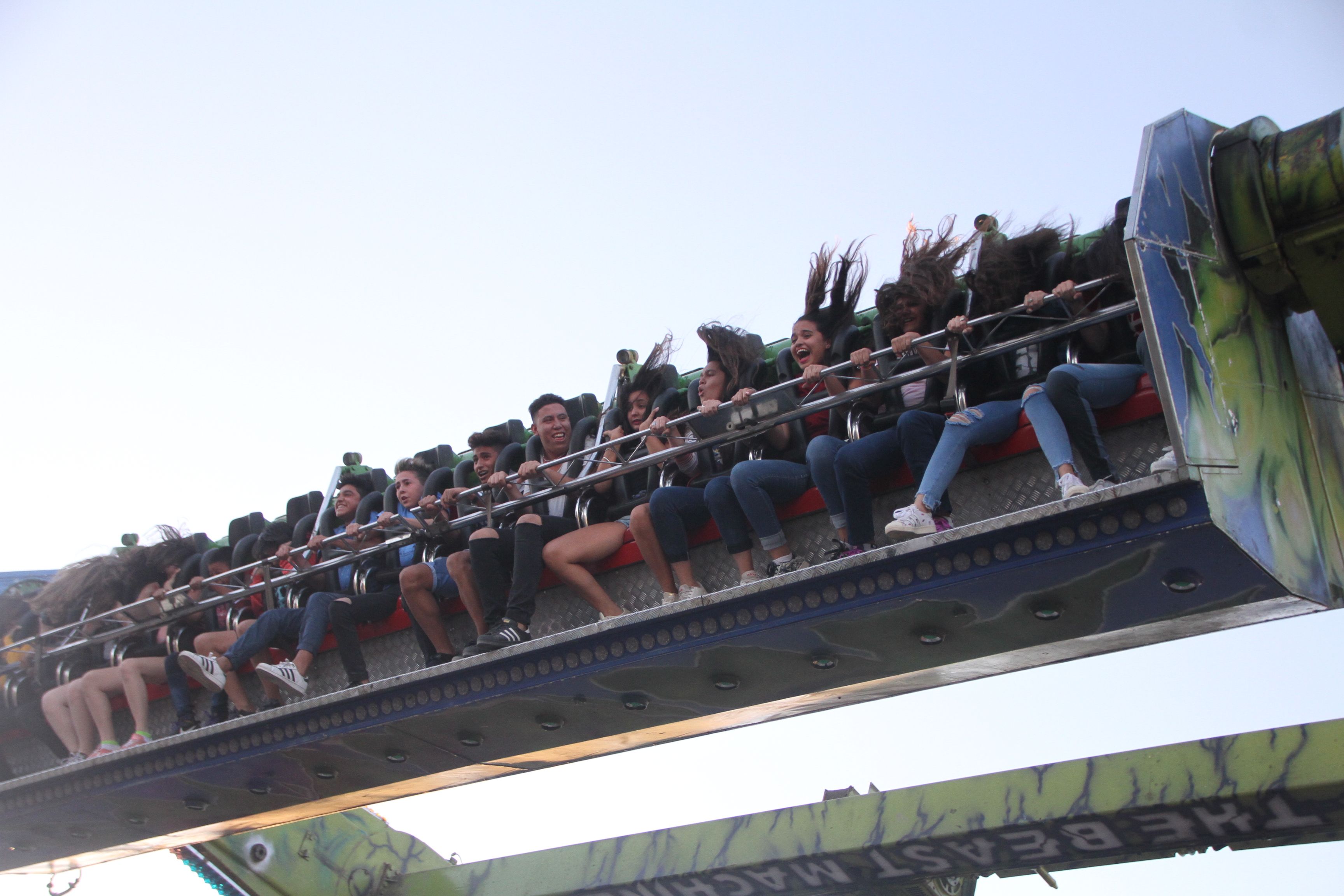 Nahuel Coca (19) fue uno de los que le puso el cuerpo al “Increíble Hulk”, y confirmó que quedó desorientado en esta estructura cilíndrica horizontal (los pasajeros van sentados uno al lado de otro, en un largo asiento), que permanentemente rota hacia adelante y atrás, mientras se eleva y baja. “Casi me muero, es muy loca la adrenalina que empieza a dar arriba, sentí que me iba a caer, no me quedó opción que cerrar los ojos”, se sinceró.