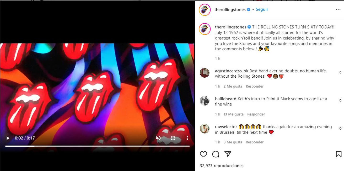 “¡A sumarse a nosotros para celebrar, compartiendo por qué ama a los Stones y sus canciones y recuerdos favoritos en los comentarios a continuación!”, pidieron los Rolling Stones a sus fans en el posteo. En menos de una hora, el anuncio se llenó de comentarios. También, el video que lo acompaña, superó las 30 mil reproducciones.