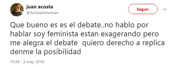 En ese momento Ambrosino se angustió y  casi rompe en llanto, hasta que el mismo Rial se acercó a él para darle un abrazo. De inmediato Acosta usó su cuenta de Twiter para celebrar el dabate, dijo que estaban exagerando y que quería su derecho a réplica.