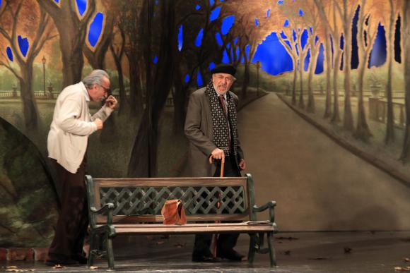 Por su parte, Blanco interpreta a don Antonio Cardoso, su polo opuesto; un viejo cascarrabias cansado de las mentiras de su compañero de banco y al que le preocupa la ceguera que puede hacer que lo despidan del edificio donde es auxiliar hace 4 décadas. Anécdotas van, anécdotas vienen; los actores hacen gala de su química, su manejo de los diálogos y del espacio. Una historia amena, que subraya que de las diferencias también se aprende.