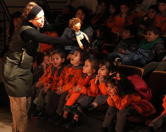 En el marco del Festival Internacional Teatro Arriba, el espacio para niños y para adolescentes fue unos de los puntos interesantes y atractivos de esta quinta edición. Ayer se desarrollaron dos funciones exclusivas para las escuelas con entradas gratuitas. Las salas del Teatro Municipal de Rawson "Oscar Kummel" y el del Cine-Teatro Municipal de Capital quedaron colmadas de jóvenes en guardapolvo de diferentes edades, que disfrutaron de una jornada súmamente divertida. Por la mañana, en Rawson, niños de nivel inicial y primaria quedaron entusiasmados por la propuesta de Ulularía Teatro, el elenco cordobés, llamada "En burrito a la escuela" (Un cuento de montaña con mates). Se trató de una puesta con títeres que transportó a los pequeños espectadores de manera imaginaria a las sierras del norte de Córdoba, siguiendo la historia de Luisito, Loli, el Tata y dos maestras de una escuelita rural, quienes narraban la vida del pastorcillo. La obra tuvo tanto color regional, incluso en el estilo folklórico de las melodías, la ambientación, la animación, lo clown y el tono típico cuando hablaban los personajes, que logró una química con los más bajitos muy especial. Además la interacción entre los títeres y el público infantil fue directa y entretenida, tal que los propios chicos se quedaron con ganas de seguir viendo más títeres en acción.
