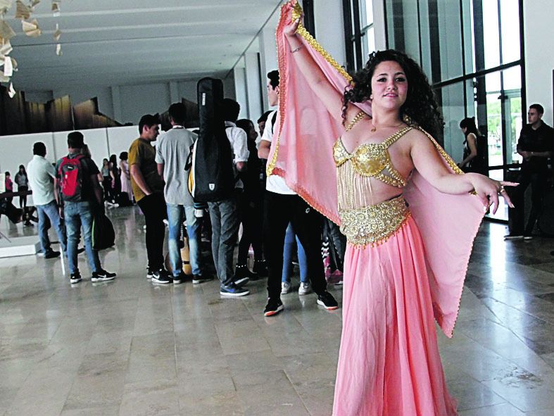 Luján Gil (15) fue acompañada por su hermana. Hace 4 años que practica danzas árabes y aprovechó el llamado para lucir en la pista sus habilidades al ritmo del derbake.