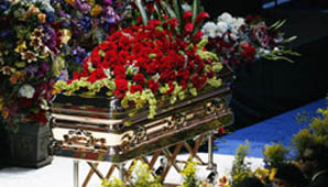 Un portavoz de la oficina de registros señaló al servicio de Internet "E!Online" que el ataúd, cubierto con rosas rojas, fue devuelto al cementerio tras la ceremonia en el Staples Center de Los Angeles.