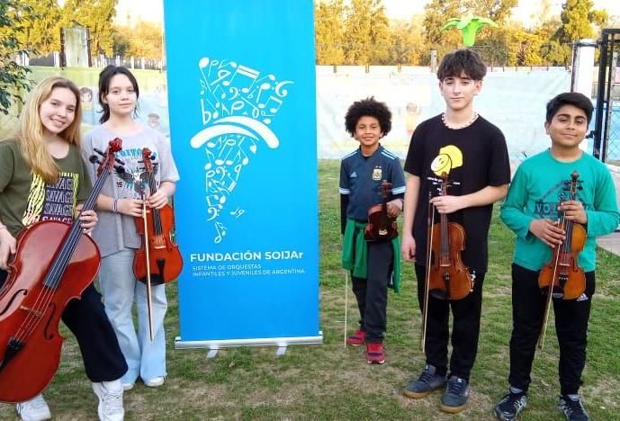 Cinco siluetas en marcha, codo a codo, con los estuches colgando del hombro, mientras el sol aún está bastante cerca del horizonte. Es una imagen que quedará para recordar el esfuerzo y dedicación de jóvenes músicos sanjuaninos que fueron convocados para participar del Festival Soijar 2023 (Sistema de Orquestas Infantiles y Juveniles de Argentina) que se realiza en Buenos Aires desde el lunes y que tendrá su gran corolario hoy, con un concierto en Tecnópolis. Rodrigo Sánchez, Ramiro Tejada y las hermanas Emilia y Martina Rodríguez pertenecen a la Orquesta Escuela de San Juan y a ellos se sumó Santiago Mijares, que es alumno del Departamento de Música de la UNSJ. Ellos fueron seleccionados junto a chicos de todo el país para sumarse por un concierto a la Orquesta Sinfónica Infantil Argentina Manuel Belgrano y además formarán parte de la camerata infantil de cuerdas formada para esta ocasión, que también actuará individualmente.