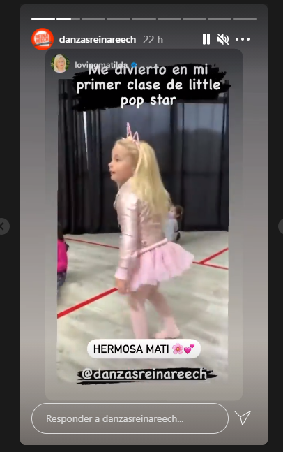 “Ella en su primera clase de little pop star”, escribió la mediática junto a emojis de bailarinas y corazones. Además arrobó a la escuela de danza de Reina Reech.