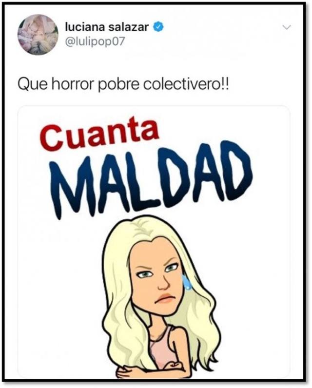 “Qué horror pobre colectivero”, escribió la flamante mamá de Matilda y acompañó la oración con una caricatura de ella misma (bitmoji).