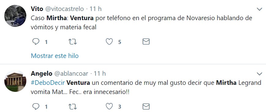 Mientras que hacia la noche las redes fueron el escenario elegido por muchos para presentar críticas a Luis Ventura por los dichos que tuvo en Debo Decir.