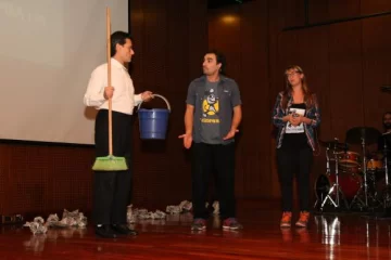 "Hoy veremos cine en blanco y negro… y también ¡mudo!", dijo Maia, quien junto a Mariano, fueron los animadores de la primera función de "La Linterna Mágica", el ciclo audiovisual y didáctico para el público infantil que vivió una tarde de sábado diferente en el Museo Provincial de Bellas Artes Franklin Rawson.