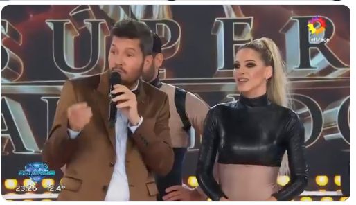 Hernán Piquín y Macarena Rinaldi llegaron para bailar el Pop Latino. Marcelo Tinelli la presentó como “la primera dama”, ya que hace más de un año mantiene una relación con el productor Federico Hoppe.