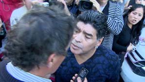 "Es el primer día del niño que voy a pasar con mi hijo", fue lo primero que mencionó ante la cámara de TN, mientras subía a su vehículo. Desde allí escuchó una pregunta del cronista de Intrusos que no le hizo gracia: "Tanto se habla de tu entorno, mirá lo que es tu entorno, tu hijo a tu lado", dijo Pablo Layus, a lo que el Diez respondió enojado:"Mi entorno me lo creo yo, a mí ni vos, que tenés 50 años como yo, ni tu jefe me van a decir lo que tengo que hacer, porque cada uno se deja llevar por el entorno feliz que tiene al lado. Y que se dejen de romper las pelo… con mi entorno, porque tengo 53 años".
